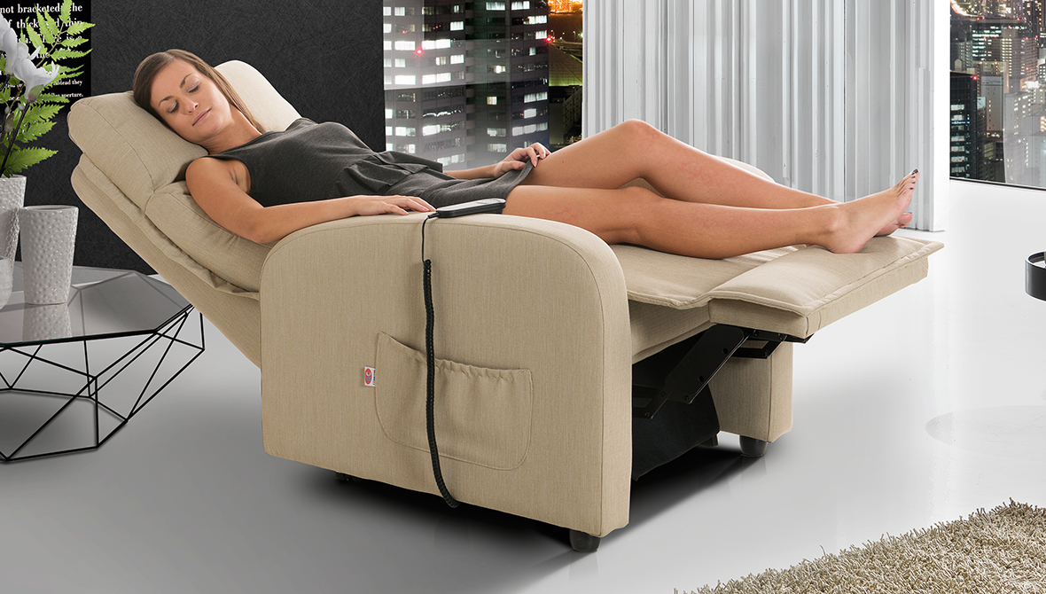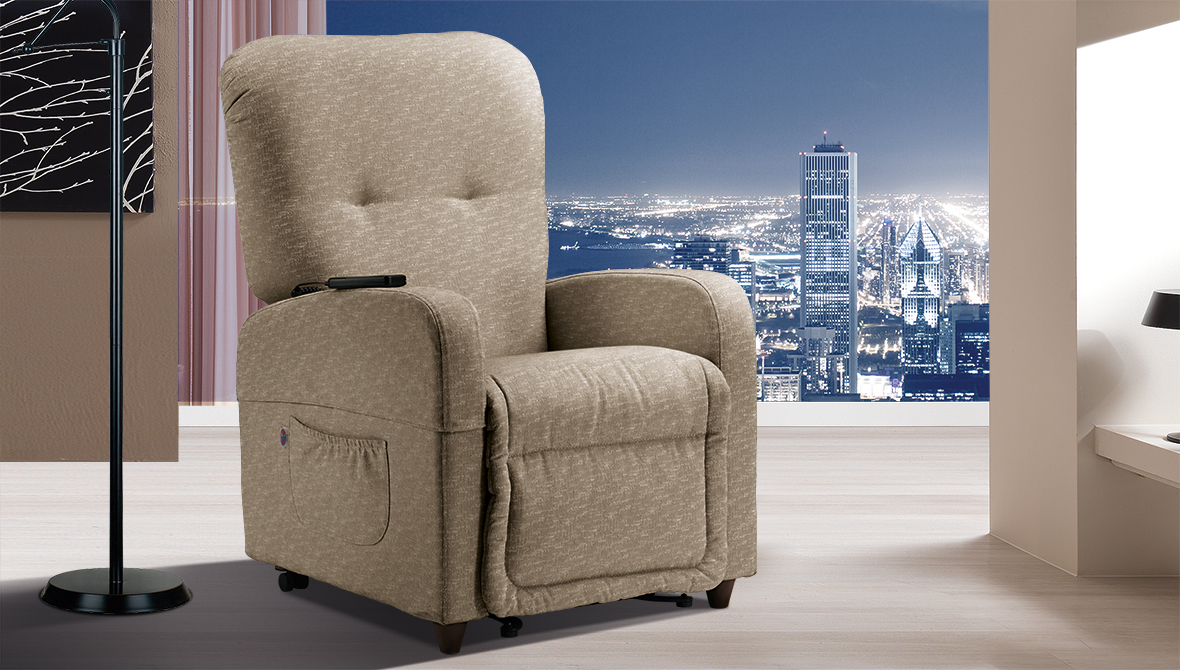 COD.10La giusta dimensione del relaxSe vuoi essere creativo nei tuoi movimenti di relax, questa poltrona motorizzata, mantenendo una caratteristica arredativa elevata, ti permette di scegliere la dimensione più tua. E' realizzata con struttura in legno di Abete e multistrato di prima scelta.